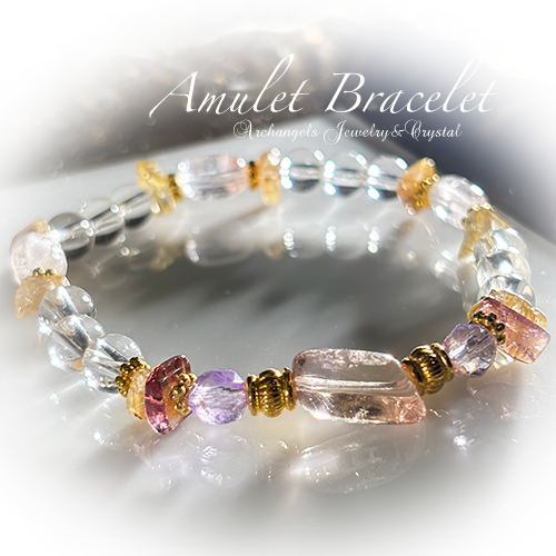 Amuletブレス「Prosperity#3」アメトリン*ランべダーアメジスト*ピンクトルマリン*ルチルクォーツ*水晶*クンツァイト