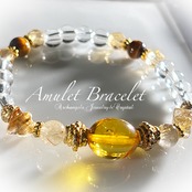 Amuletブレス「Prosperity#2」アンバー*ルチルクォーツ*水晶*シトリン*タイガーアイ