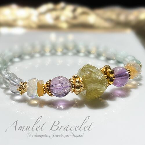 Amuletブレス「Peace#1」グリーンガーネット*アメジスト*ファイヤーオパール*フローライト