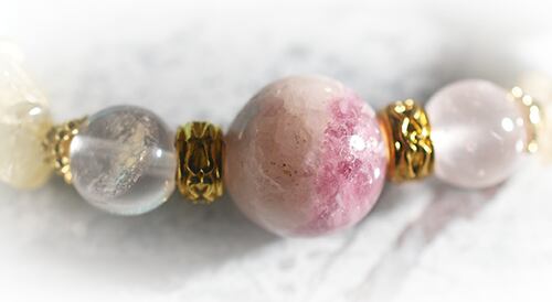 Amuletブレス「Mermaid#3」ピンクトルマリンシリカ*スターローズ*ルチルクォーツ*ターコイズ