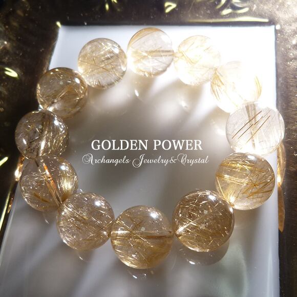 「Golden Power」大玉 ルチルクォーツ17mm・一連 ブレス