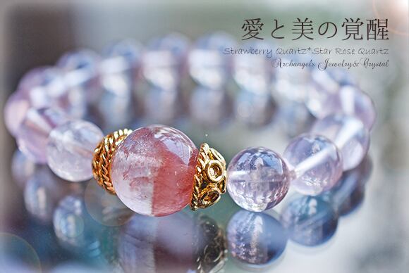 ジュエル・ブレス「愛と美の覚醒」カザフスタン産ストロベリークォーツ14mm*スターローズクォーツ10mm