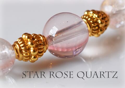 透明感のあるヴェールピンクのスターローズクォーツをトップに