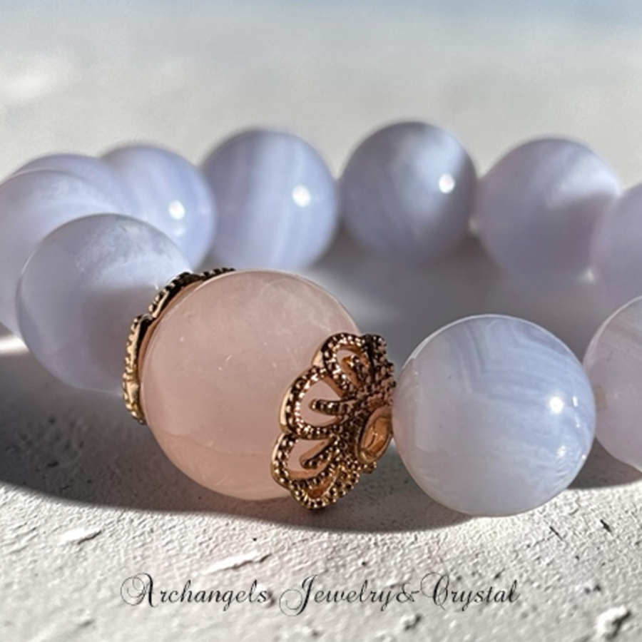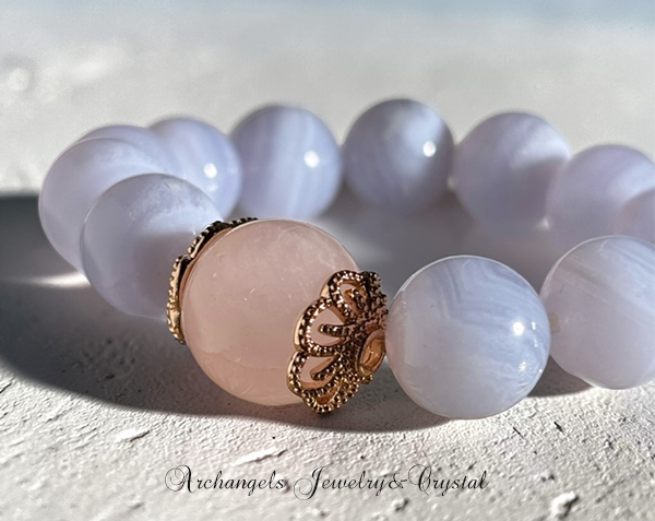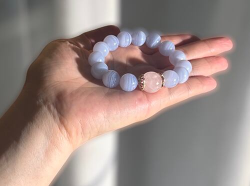 オリジナル・ブレス「Peace of Mind」ローズクォーツ*ブルーレースアゲート