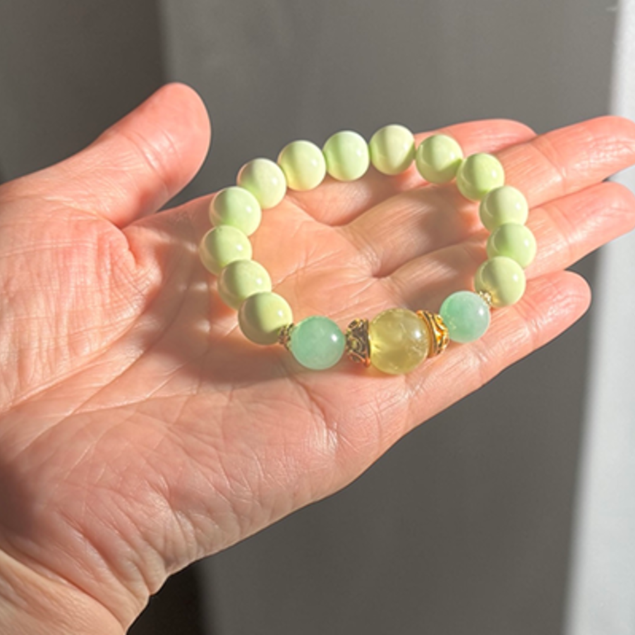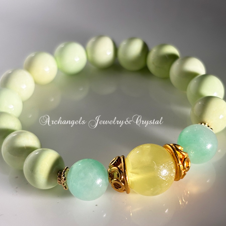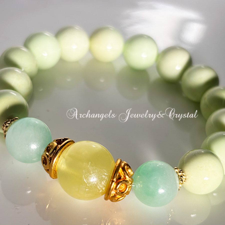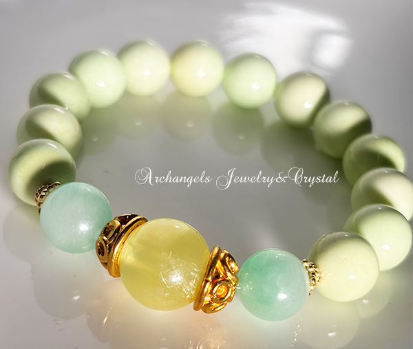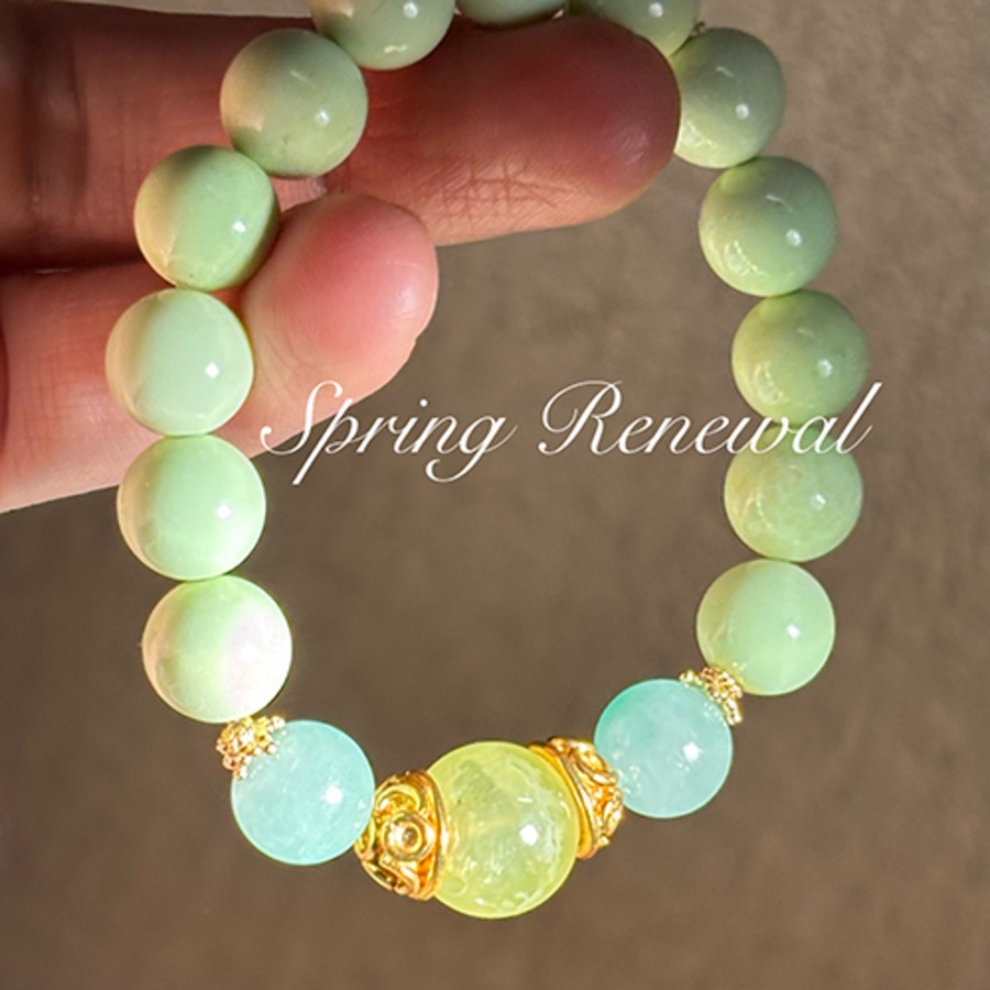 オリジナル・ブレス「Green Renewal」プレナイト*ミャンマー翡翠*レモンクリソプレーズ