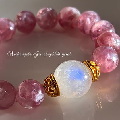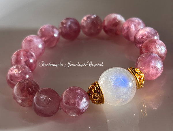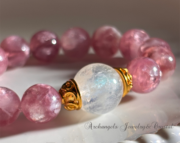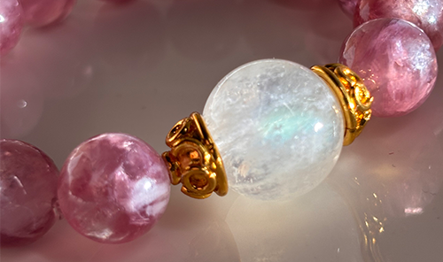 ジュエル・ブレス「Rose Moon Light」レインボームーンストーン × ピンクマイカ(レピドライト)
