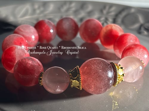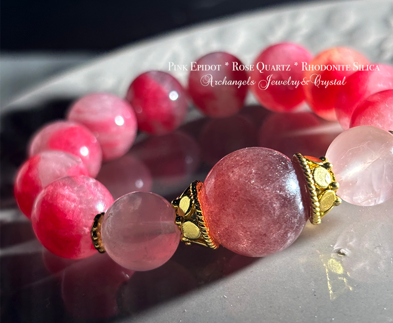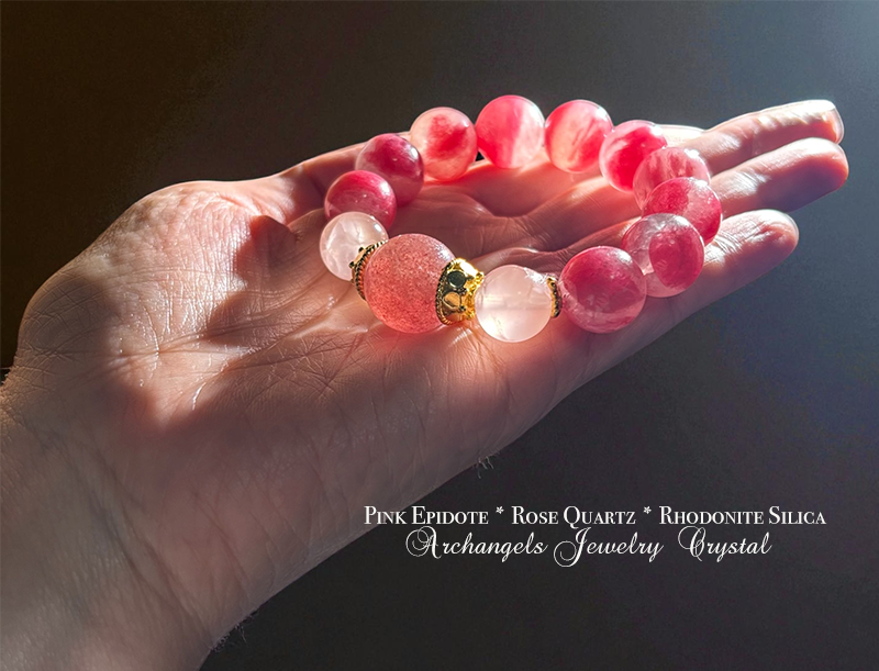 ジュエル・ブレス 「Lovebirds」ピンクエピドート*ローズクォーツ*ロードナイトシリカ
