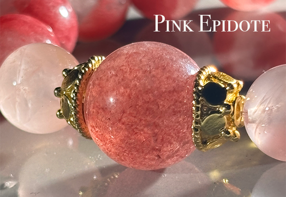 メインにピンクエピドート、そのサイドにローズクォーツ